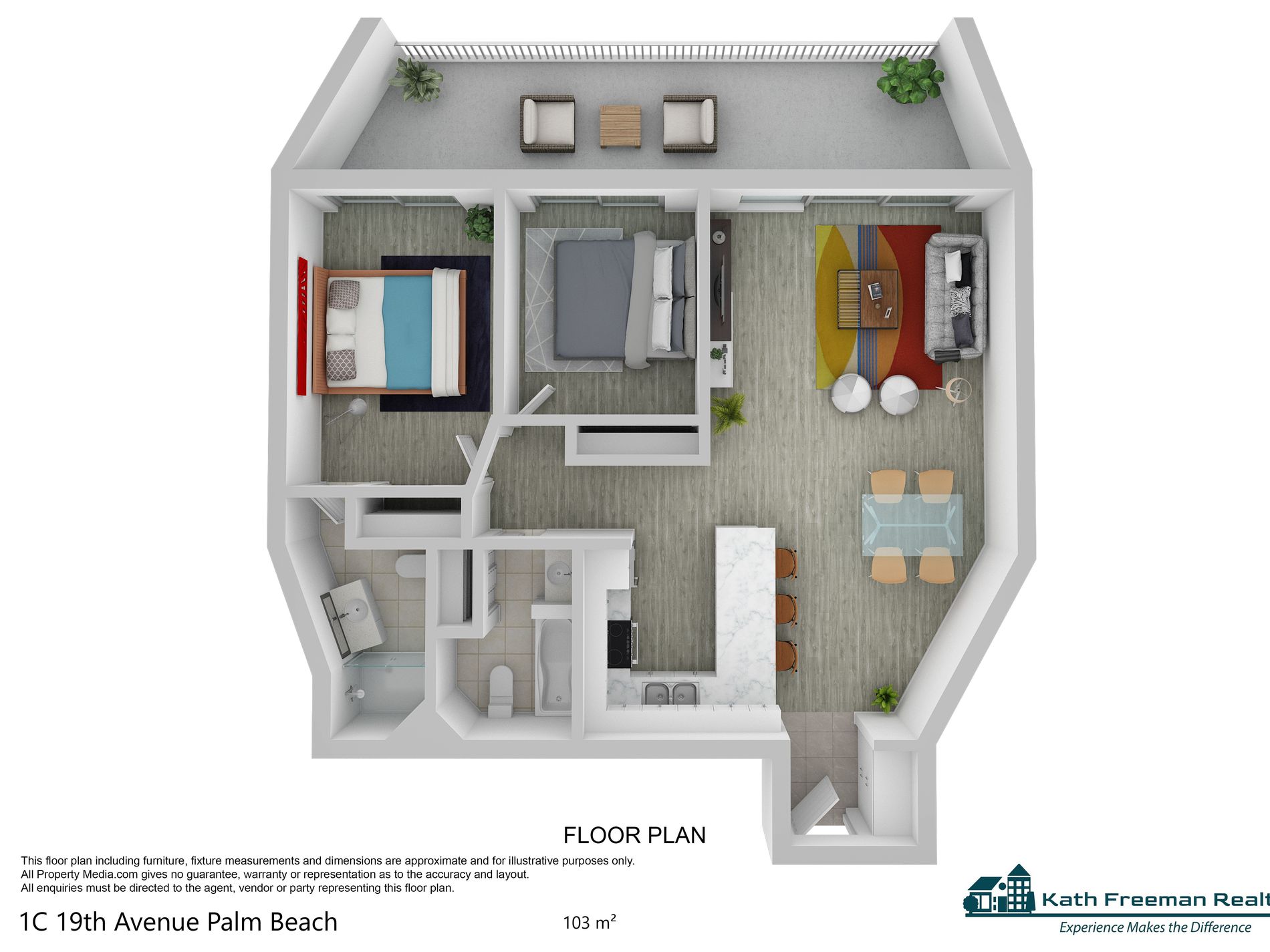 * Extremely generous balcony accessible from both bedrooms and the living area