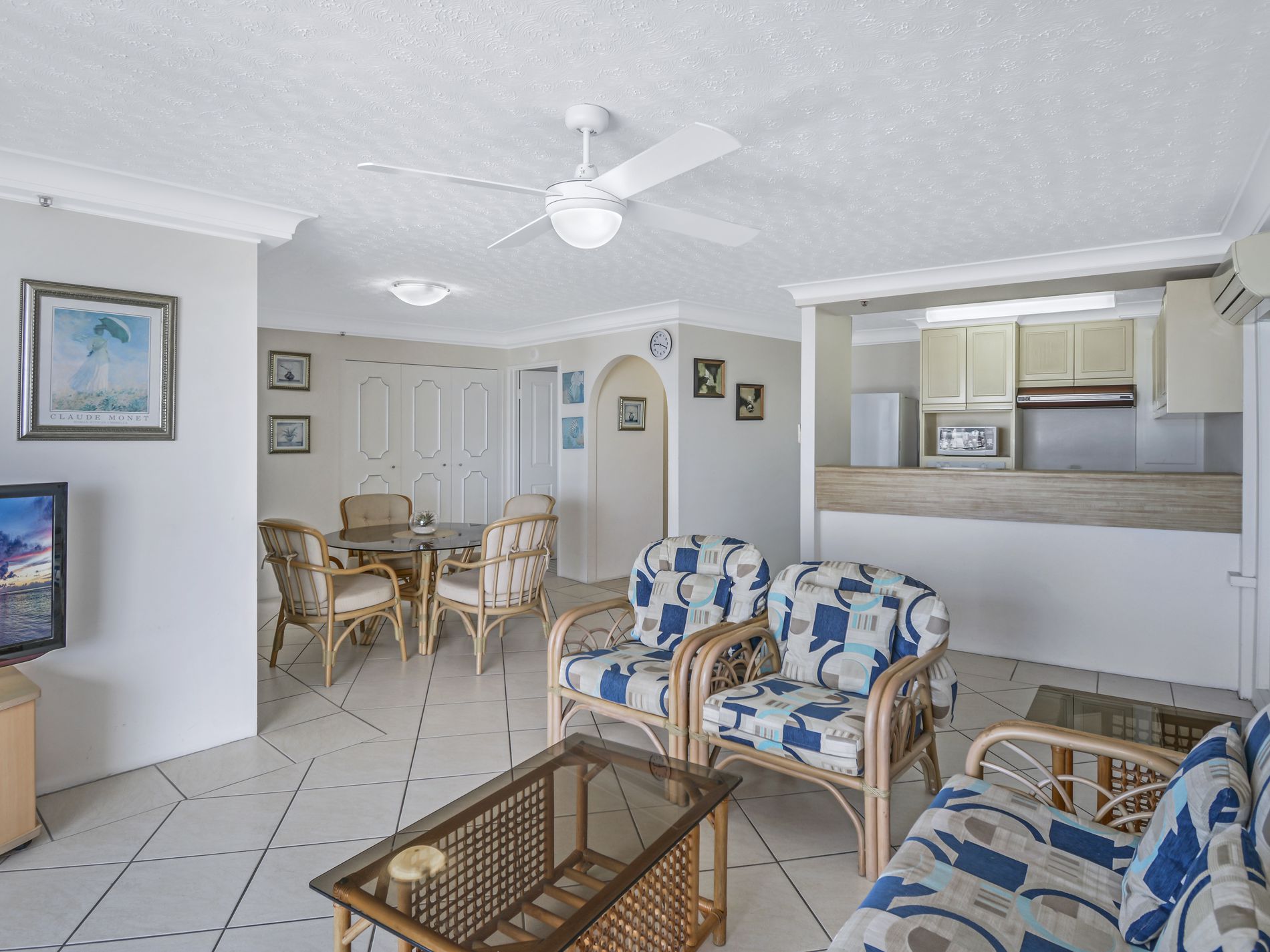 Fully tiled living area.