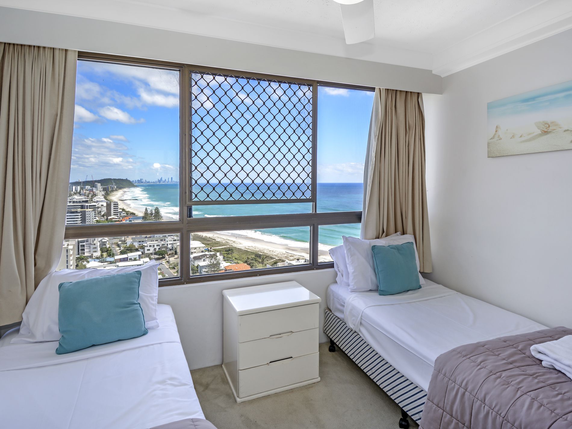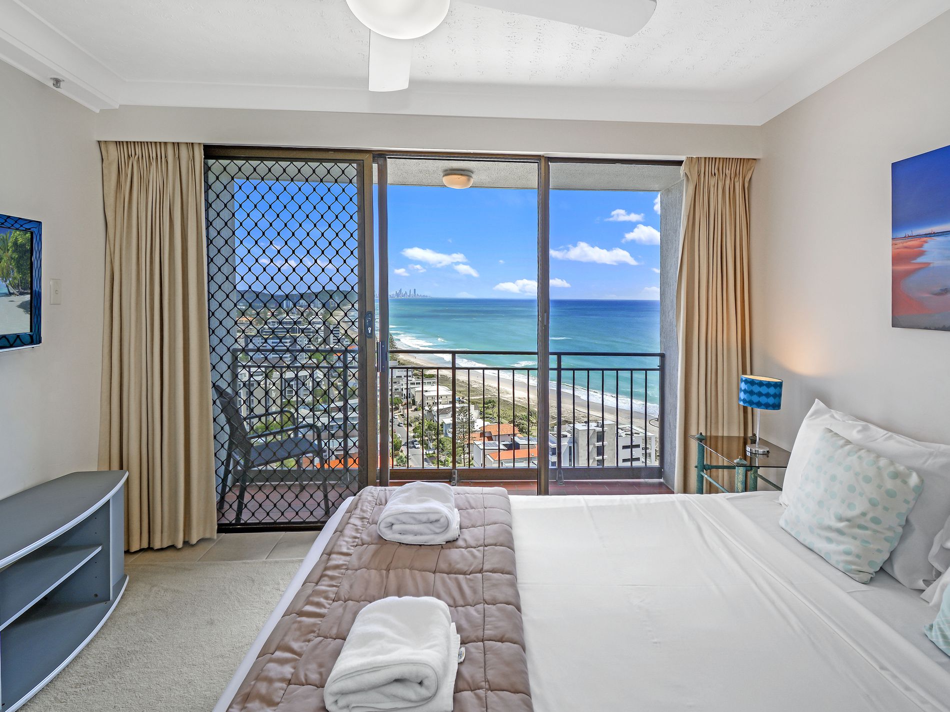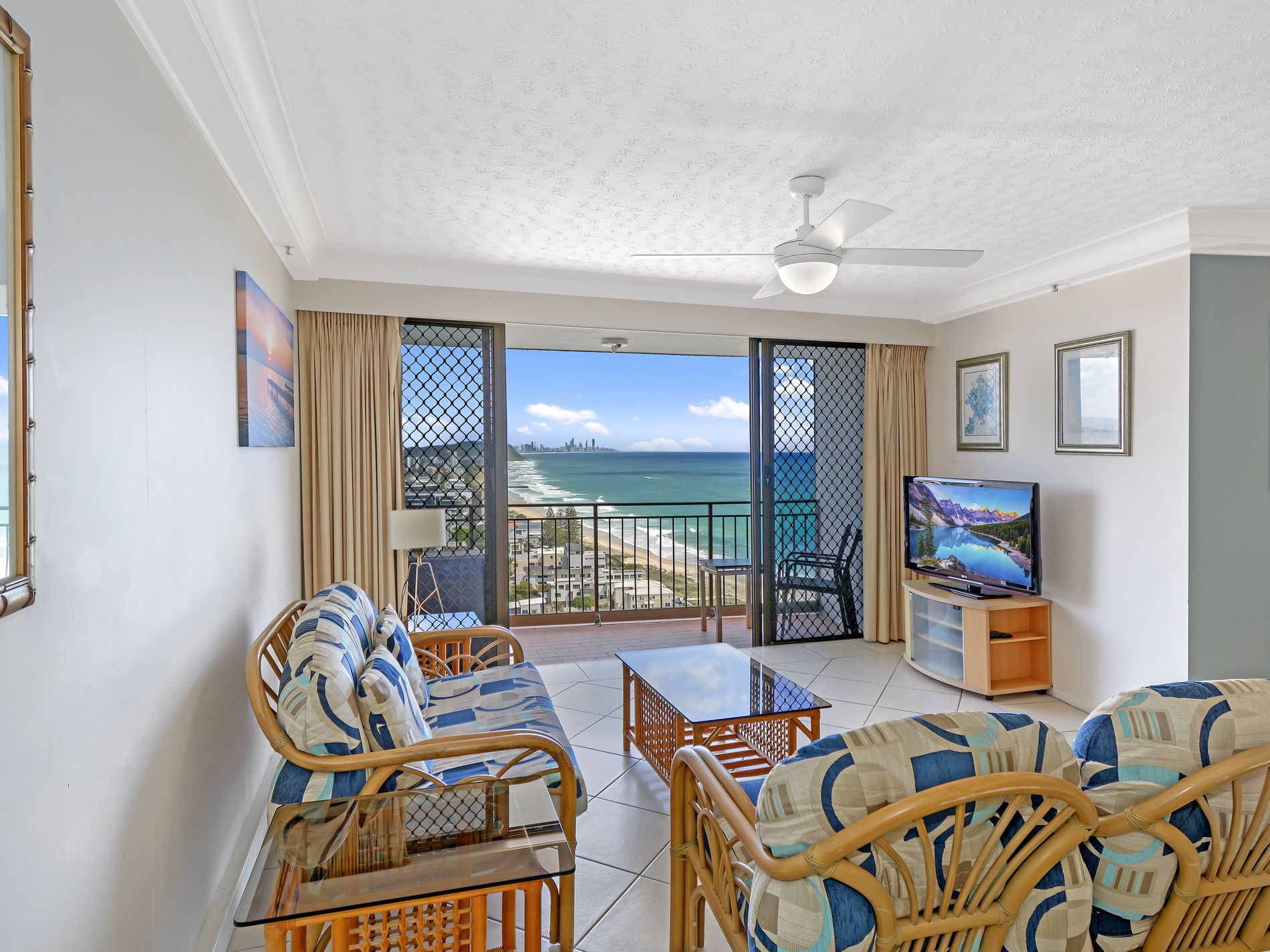Sweeping and spectacular ocean and beach views north to Surfers Paradise and the full sweep of the beach.