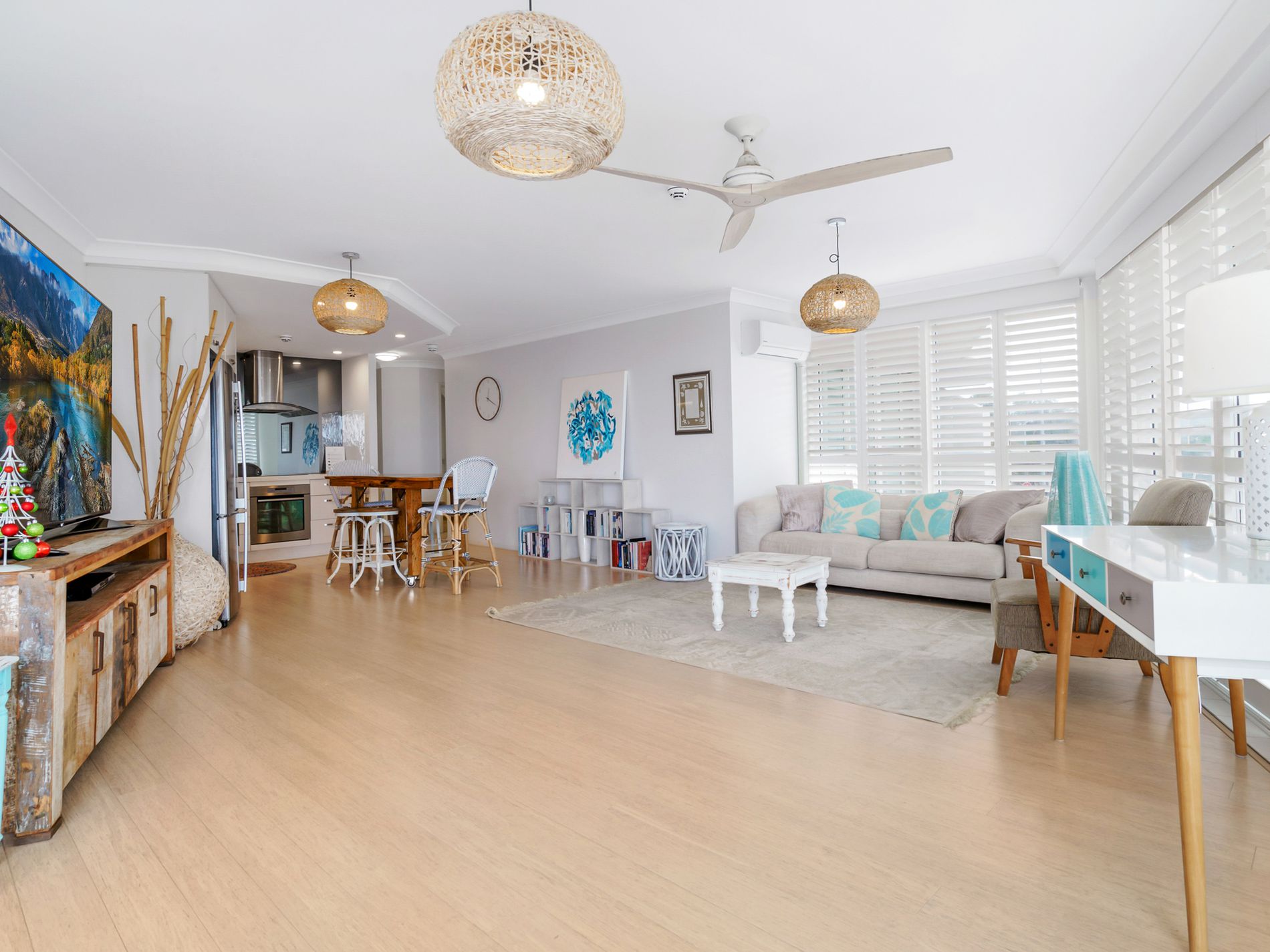 The apartment is contemporary and fully renovated featuring terrazzo tiles throughout all wet zones, quality bamboo flooring in all living and entertaining areas, a modern entertainer's kitchen, premier shutters and high-quality fixtures.