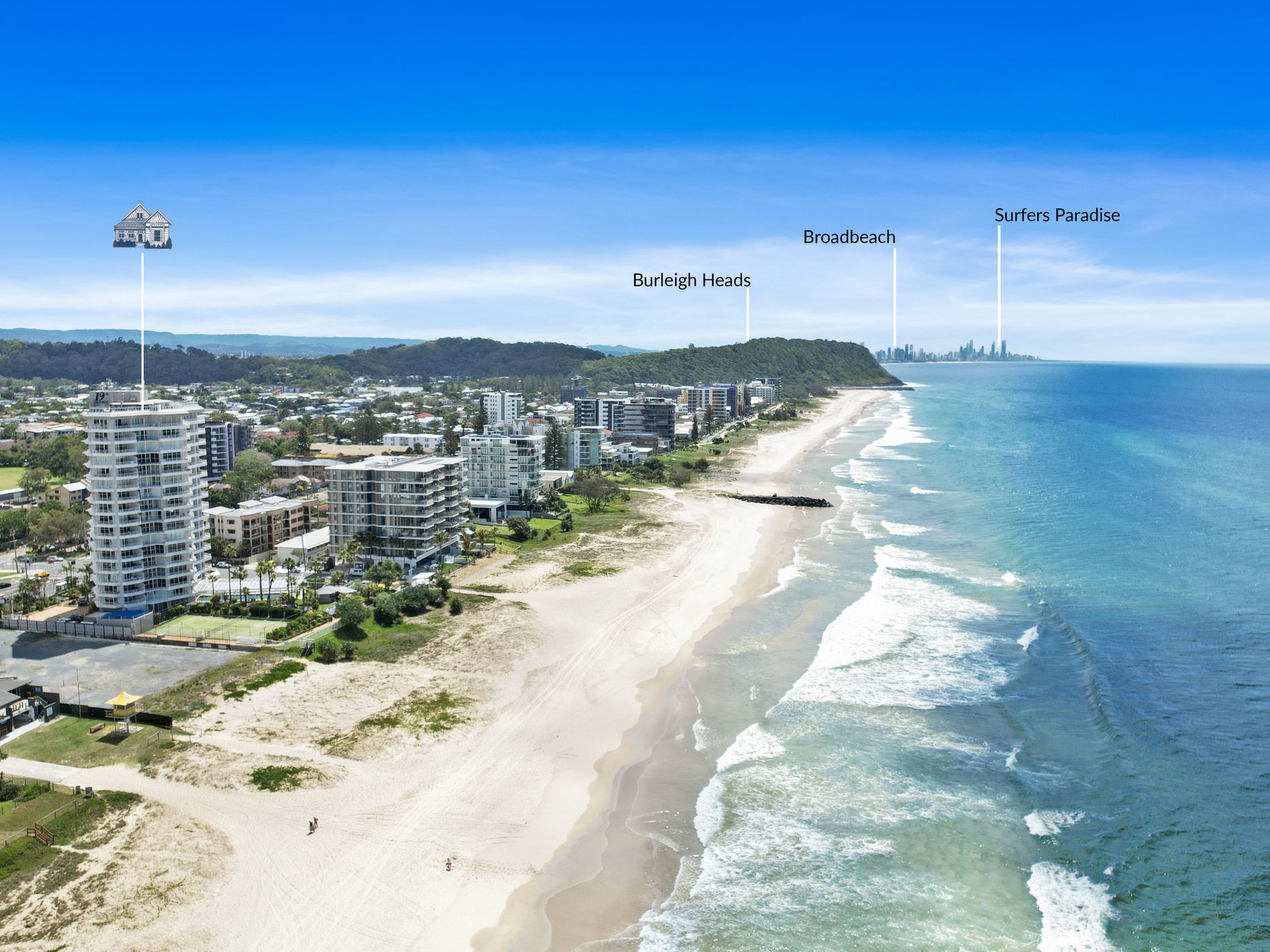 Offering two bedrooms, ensuite to master and a large and comfortable living dining area, undoubtedly the best element is the unobstructed ocean views with the golden Palm Beach sands at your doorstep.