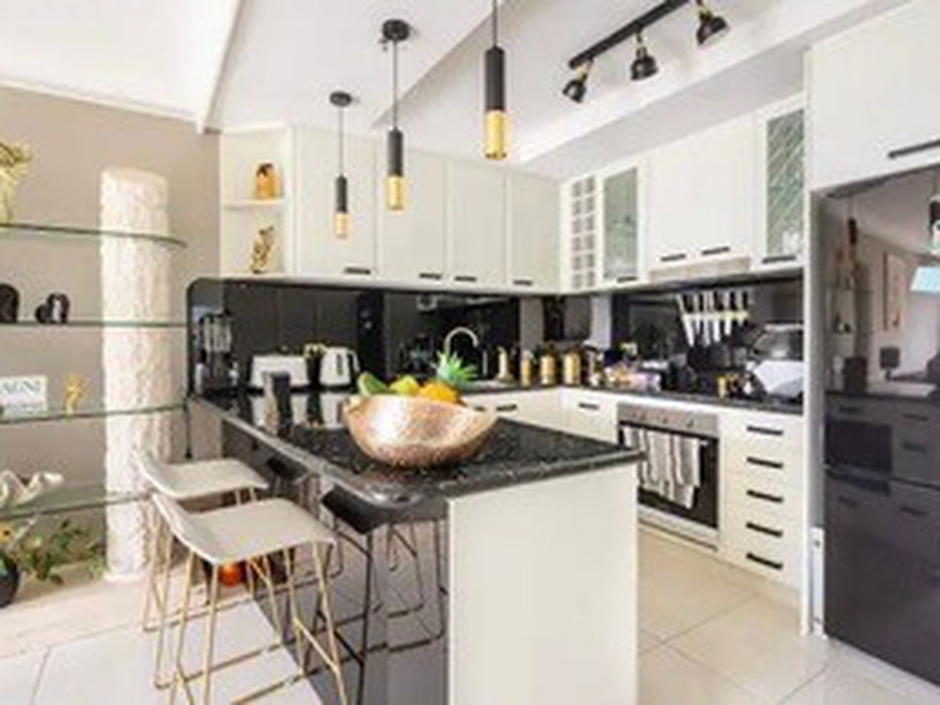 A beautiful kitchen that makes the most of the available space, with excellent storage and ample bench space with views through to the ocean.