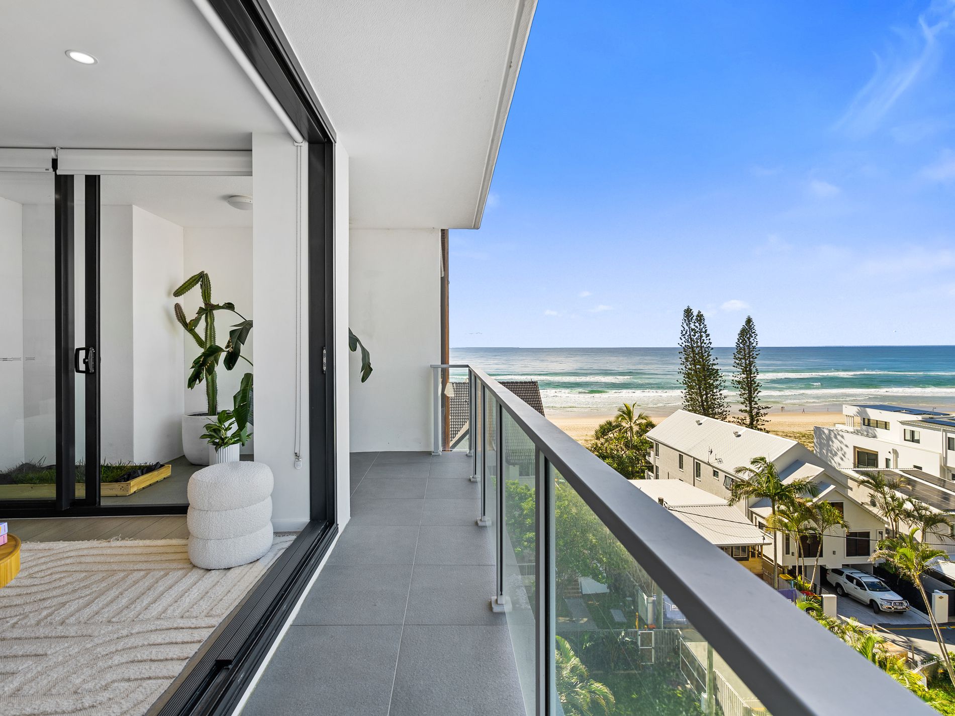- Spacious wrap around balcony with 180-degree views of the ocean, Currumbin Rock, Coolangatta and the Hinterland.