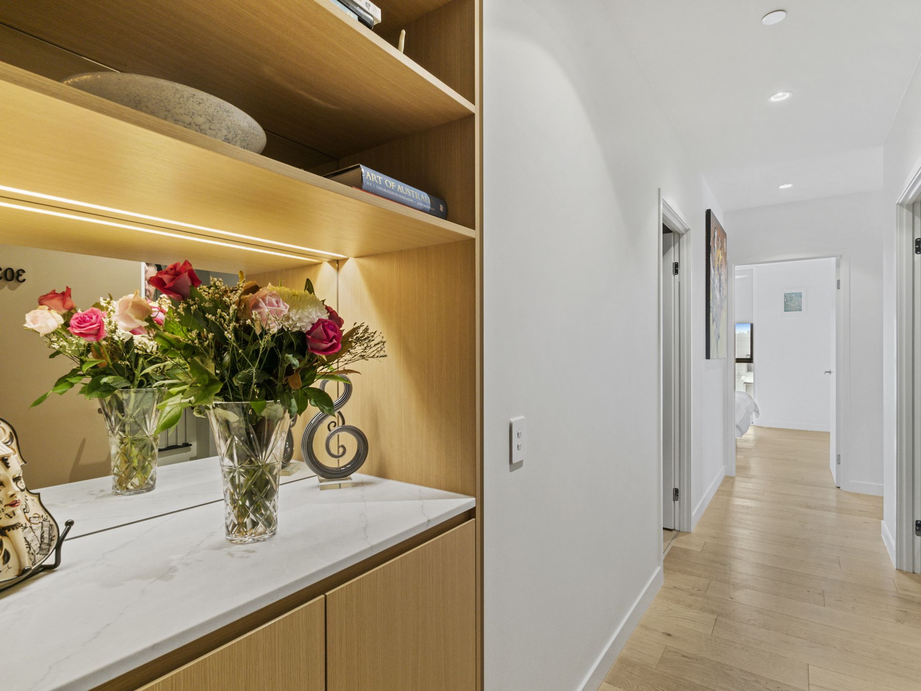 Designed for discerning buyers, the light-filled interiors flow seamlessly to a vast covered balcony — the ultimate space for alfresco entertaining or soaking in the coastal ambience. A designer kitchen with premium Miele appliances, sleek joinery and an ocean-facing island bench anchors the open-plan living zone. Individual touches including an expanded and sizable pantry, additional enclosed cabinetry ensure maximum flexibility and ease of living in this prestigious apartment.