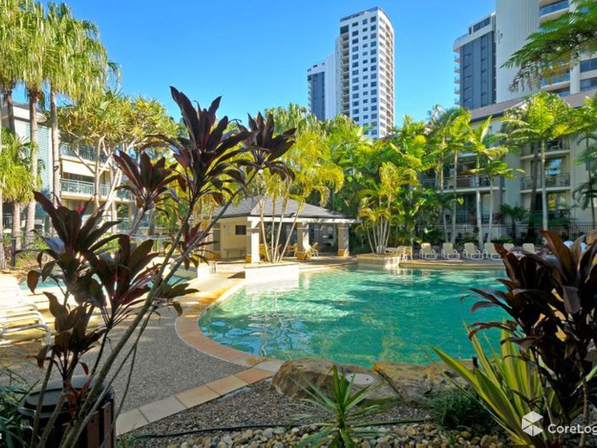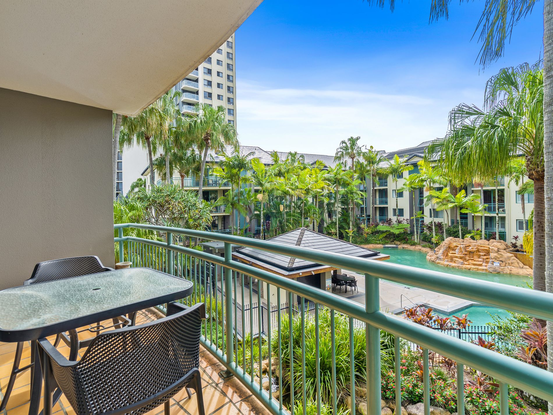 • Large balcony with views of the lagoon pool and tropical surrounds