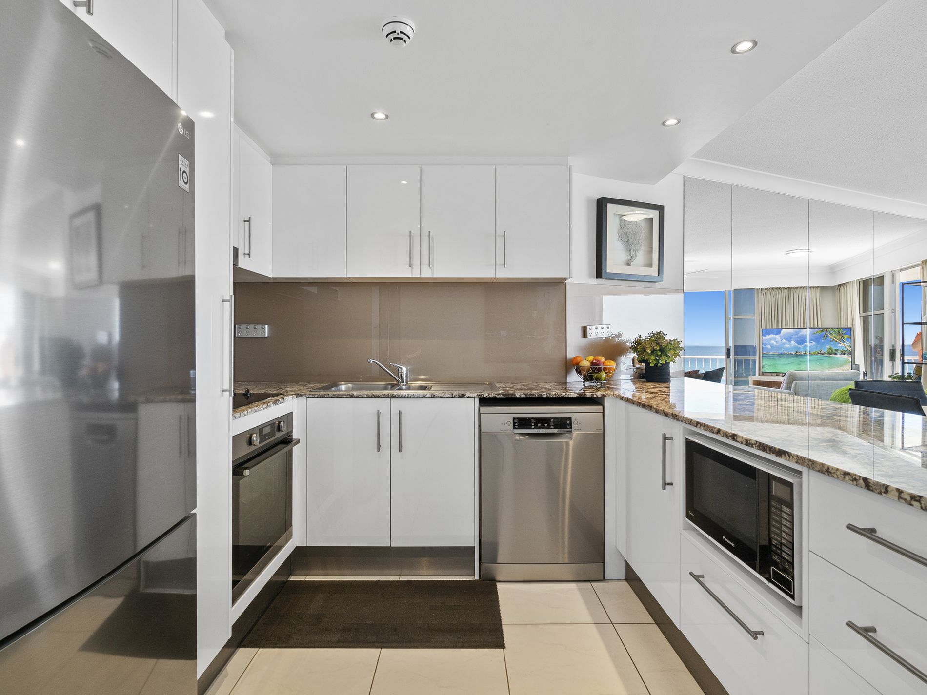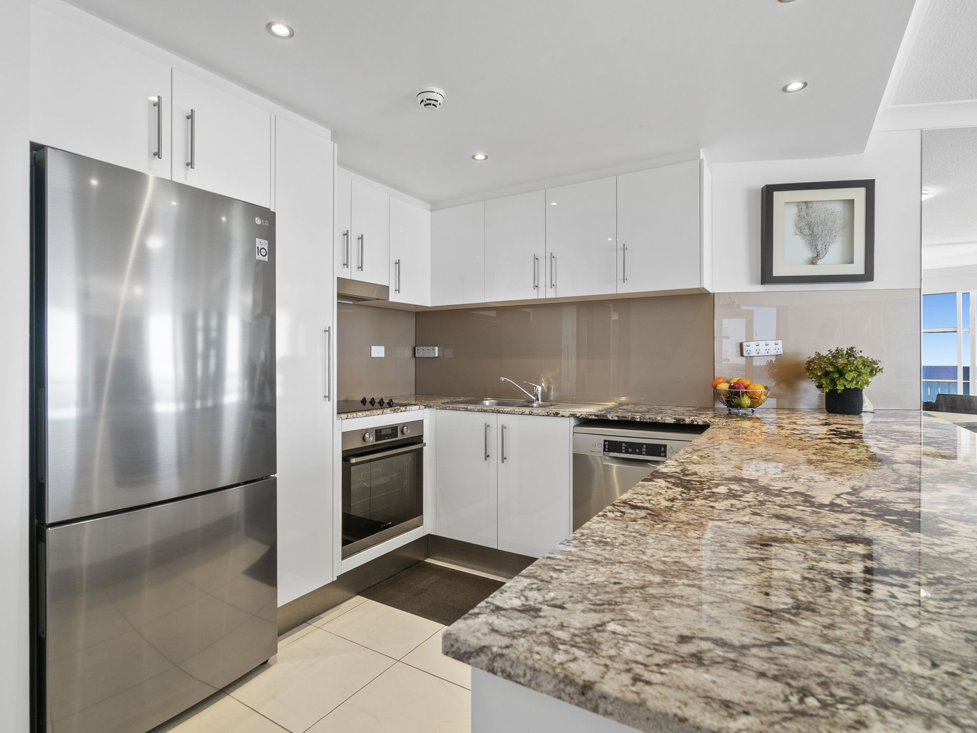 • Modern kitchen with stone benchtops and generous storage