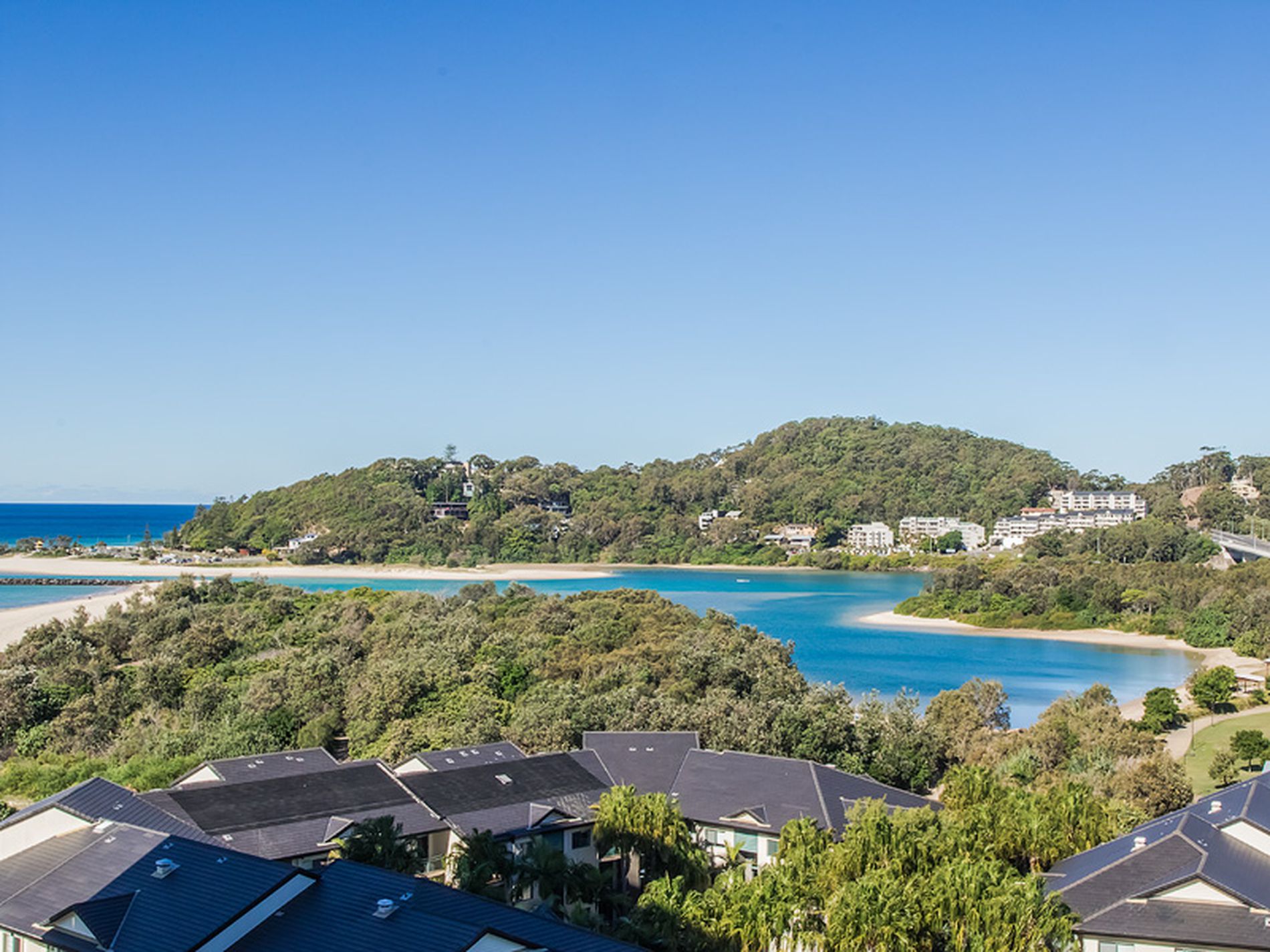 ALL LIVING AREAS, KITCHEN AND BOTH BEDROOMS ENJOY SWEEPING OCEAN AND ESTUARY VIEWS.