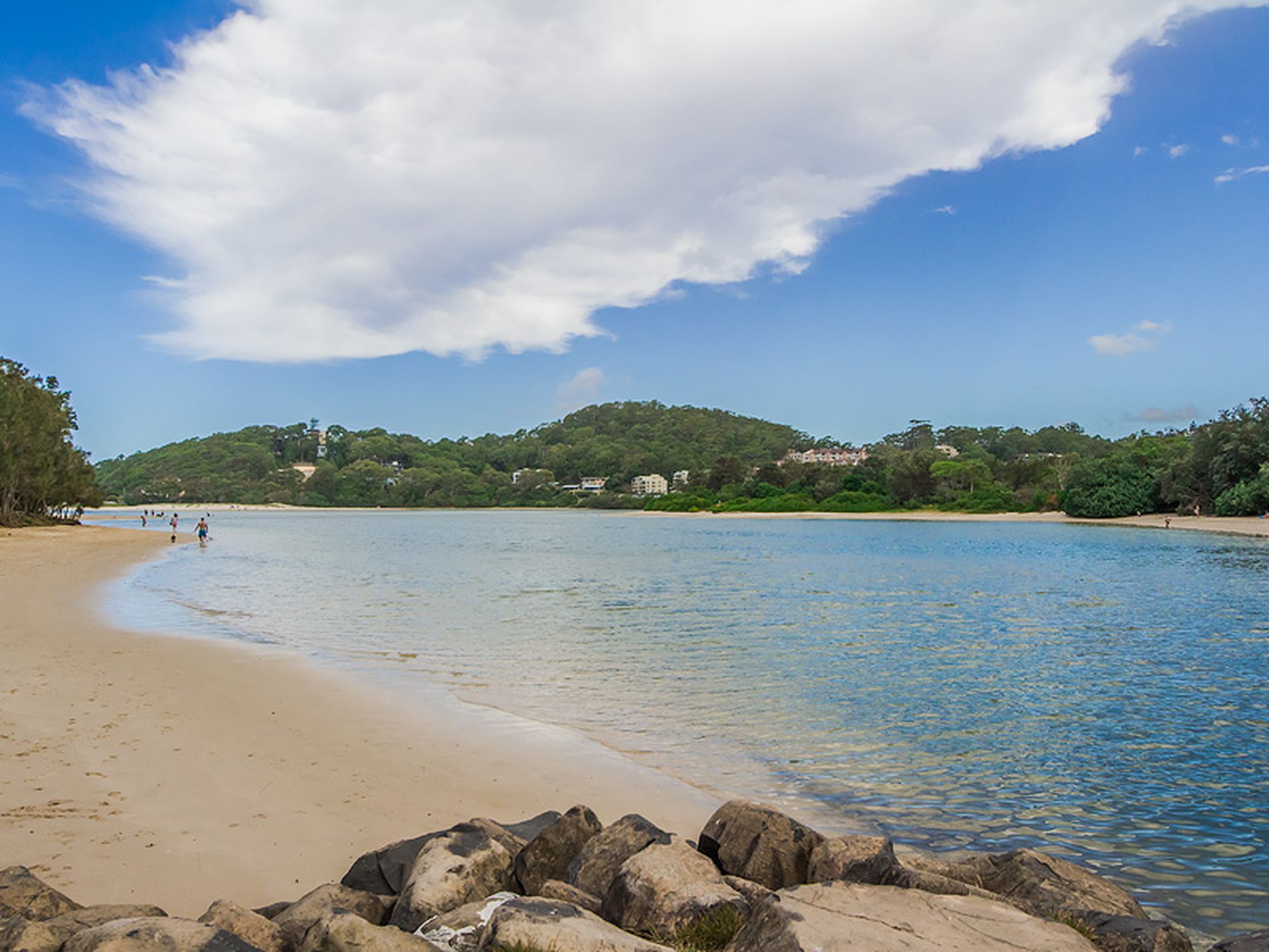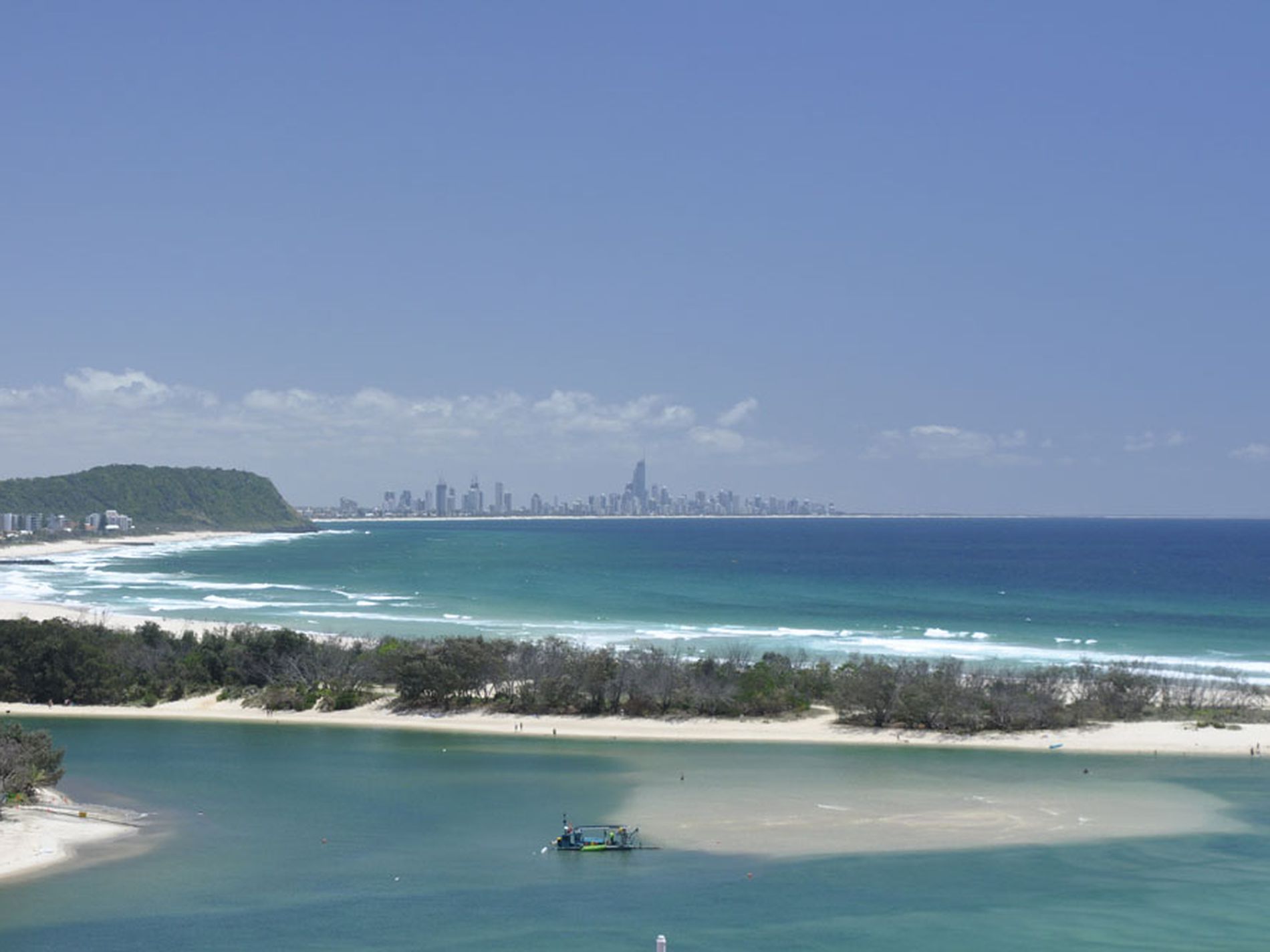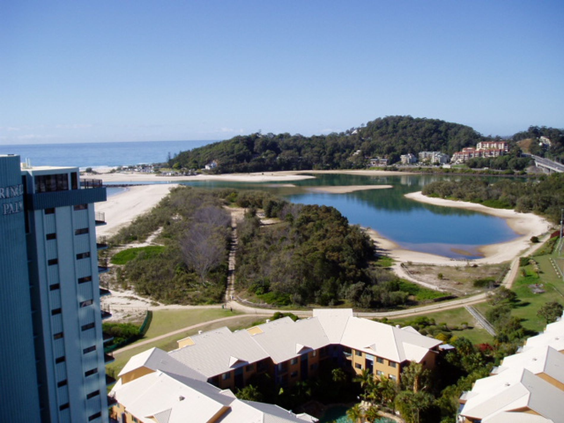 Adjaecent to the still water of Currumbin Estuary, cafe and Parkland.