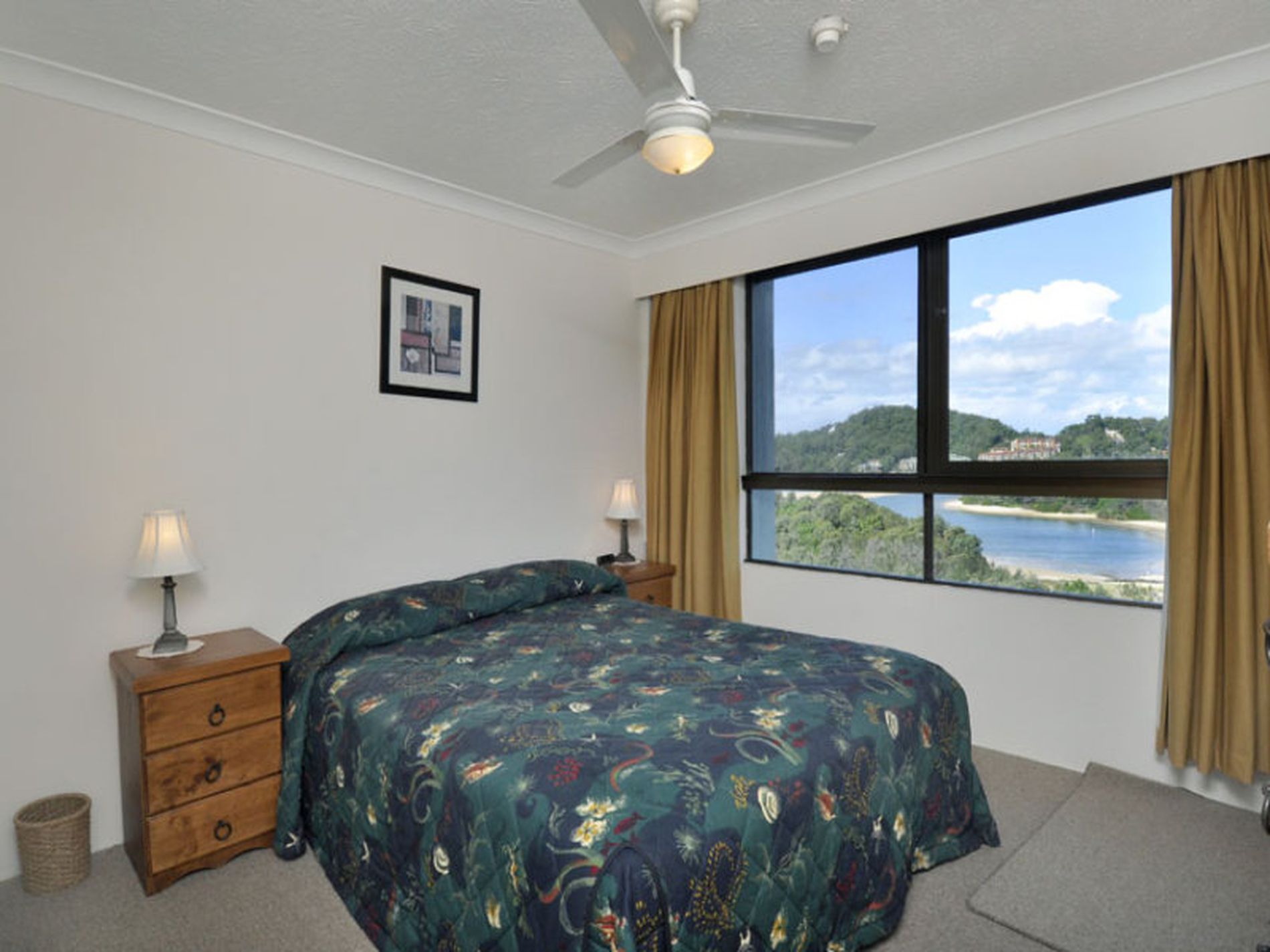 Private north facing balconies, plus second balcony off main bedroom overlooking Currumbin Estuary. Soft pastel decor throughout.