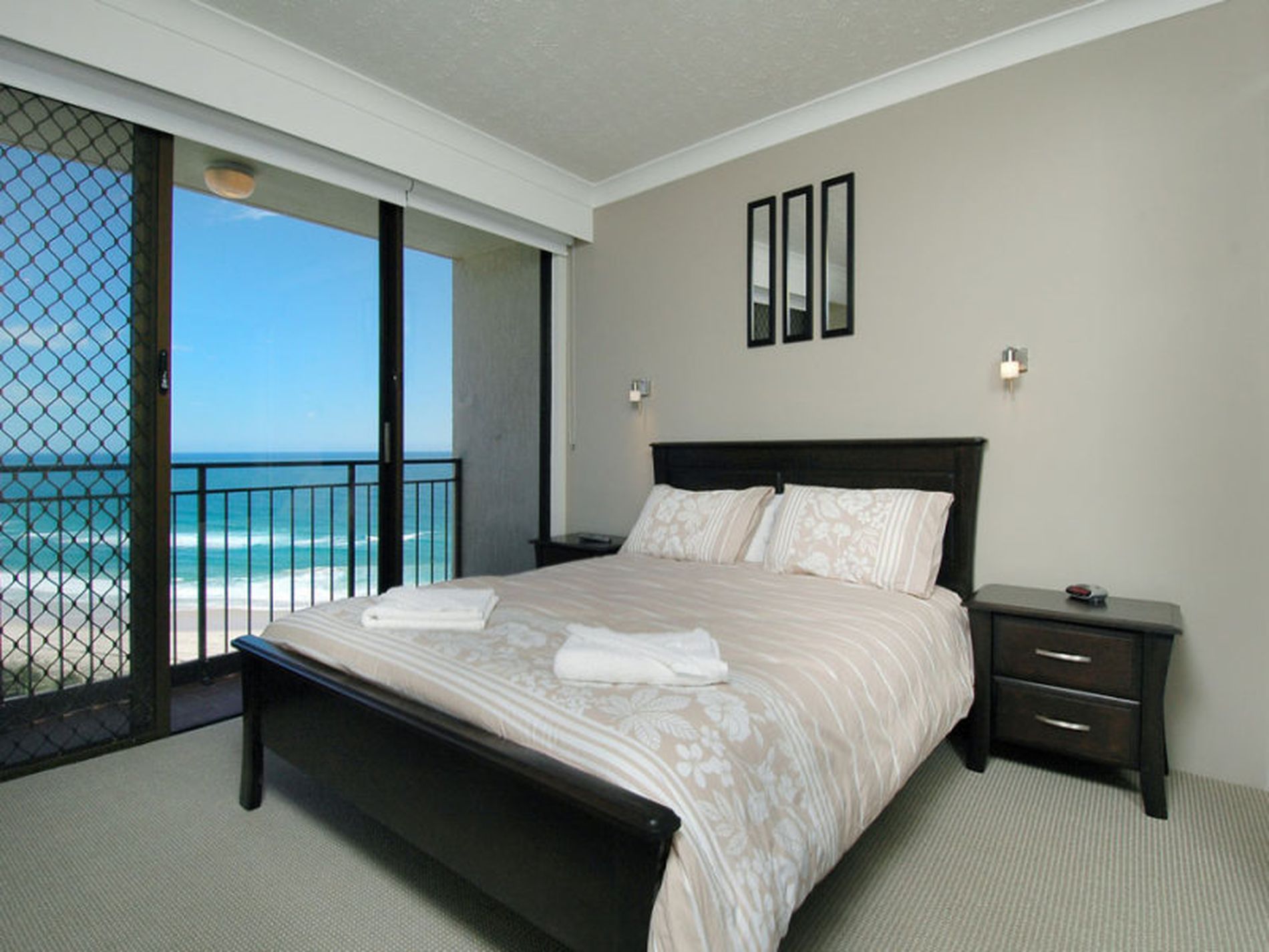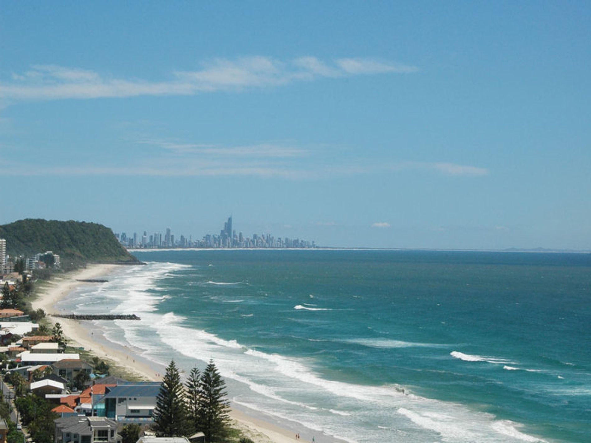 Stunning ocean views to the north, to the east and capturing the full sweep of the beach to Burleigh Headland, Surfers Paradise, Stradbroke Island - panoramic 180 degree views. Patrolled beach at your door.