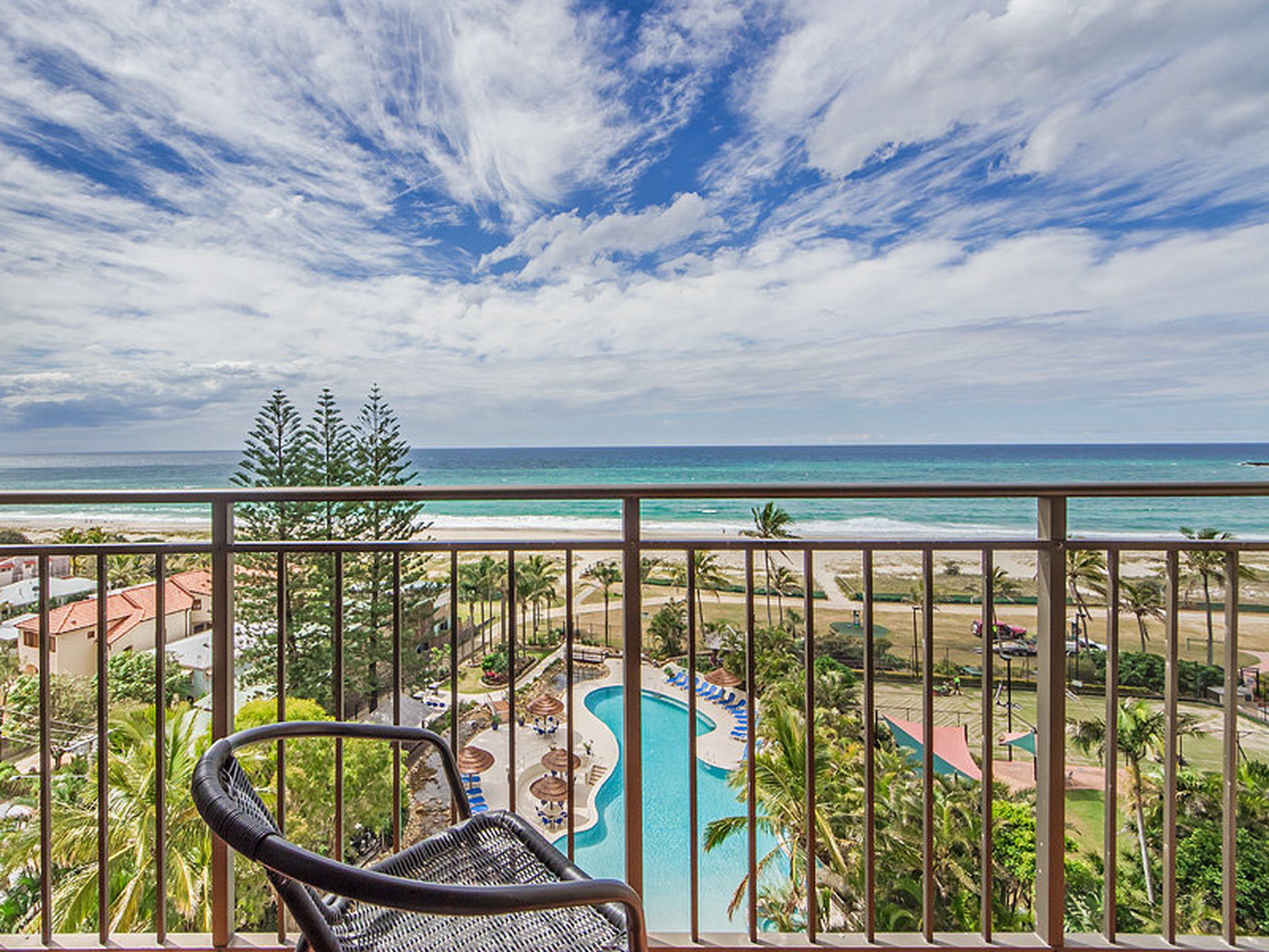 Stunning ocean views to the north, to the east and capturing the full sweep of the beach to Burleigh Headland, Surfers Paradise, Stradbroke Island. SO MUCH TO ENJOY!