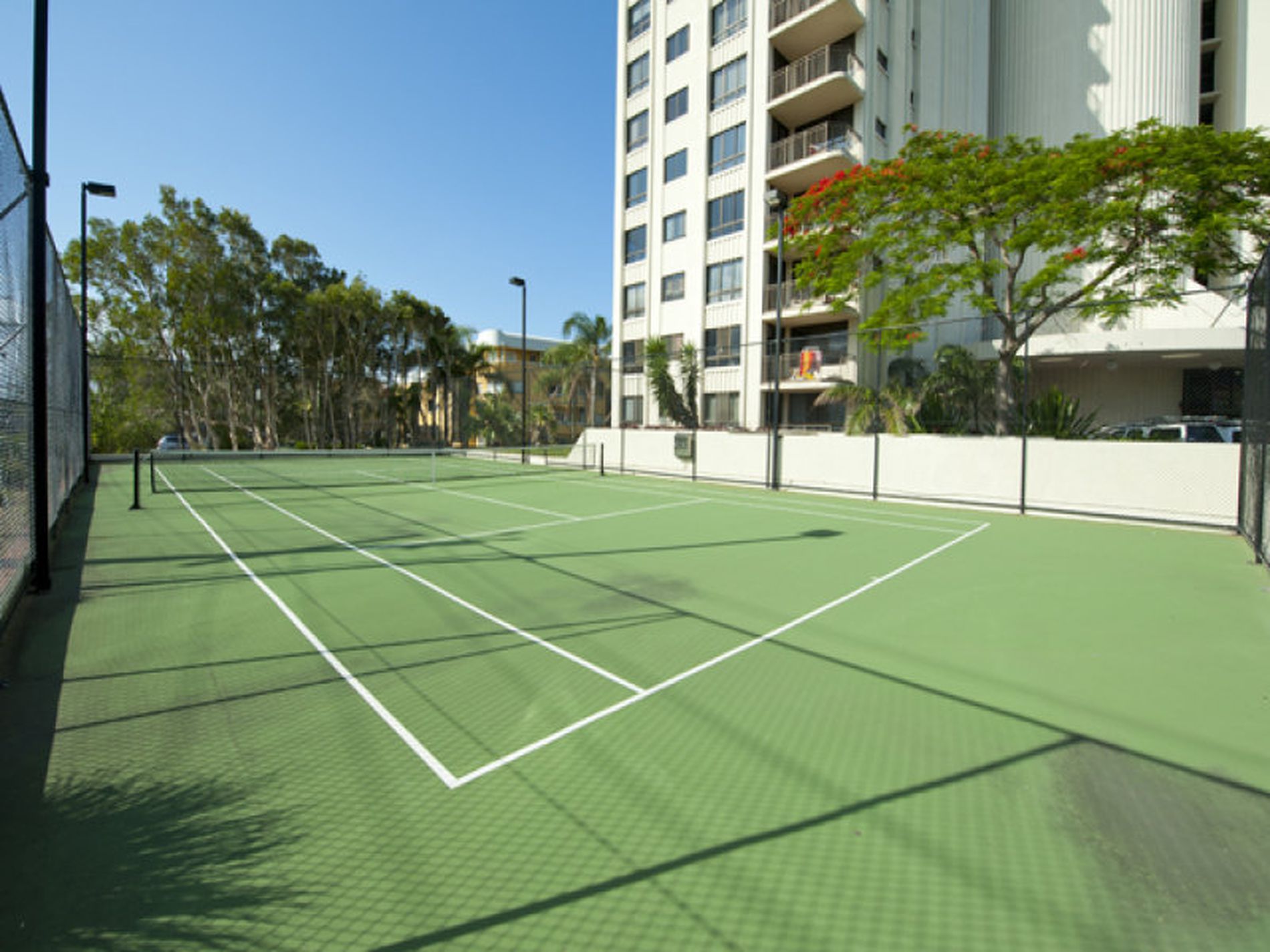 Relax in the pool, spa, sauna or play tennis on the full size court; work out in the fully equipped gymnasium, enjoy the BBQ & gazebo facilities; Foxtel, internet services, mini-putting, games room.