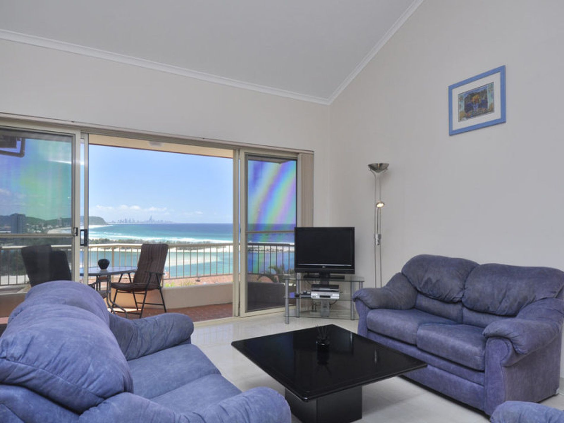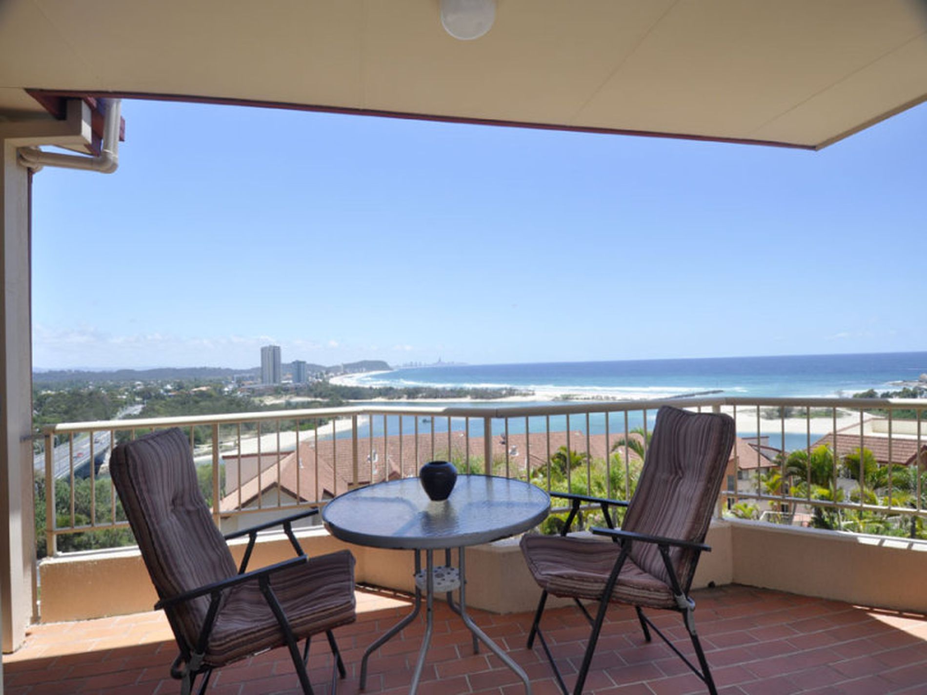 NORTH TO NORTH-EAST.SPACIOUS APARTMENT WITH STUNNING COASTAL PANORAMIC OCEANS VIEWS TO THE NORTH, TO THE EAST AND CAPTURING THE FULL SWEEP OF THE BEACH TO BURLEIGH HEADLAND, SURFERS PARADISE AND STRADBROKE ISLAND.