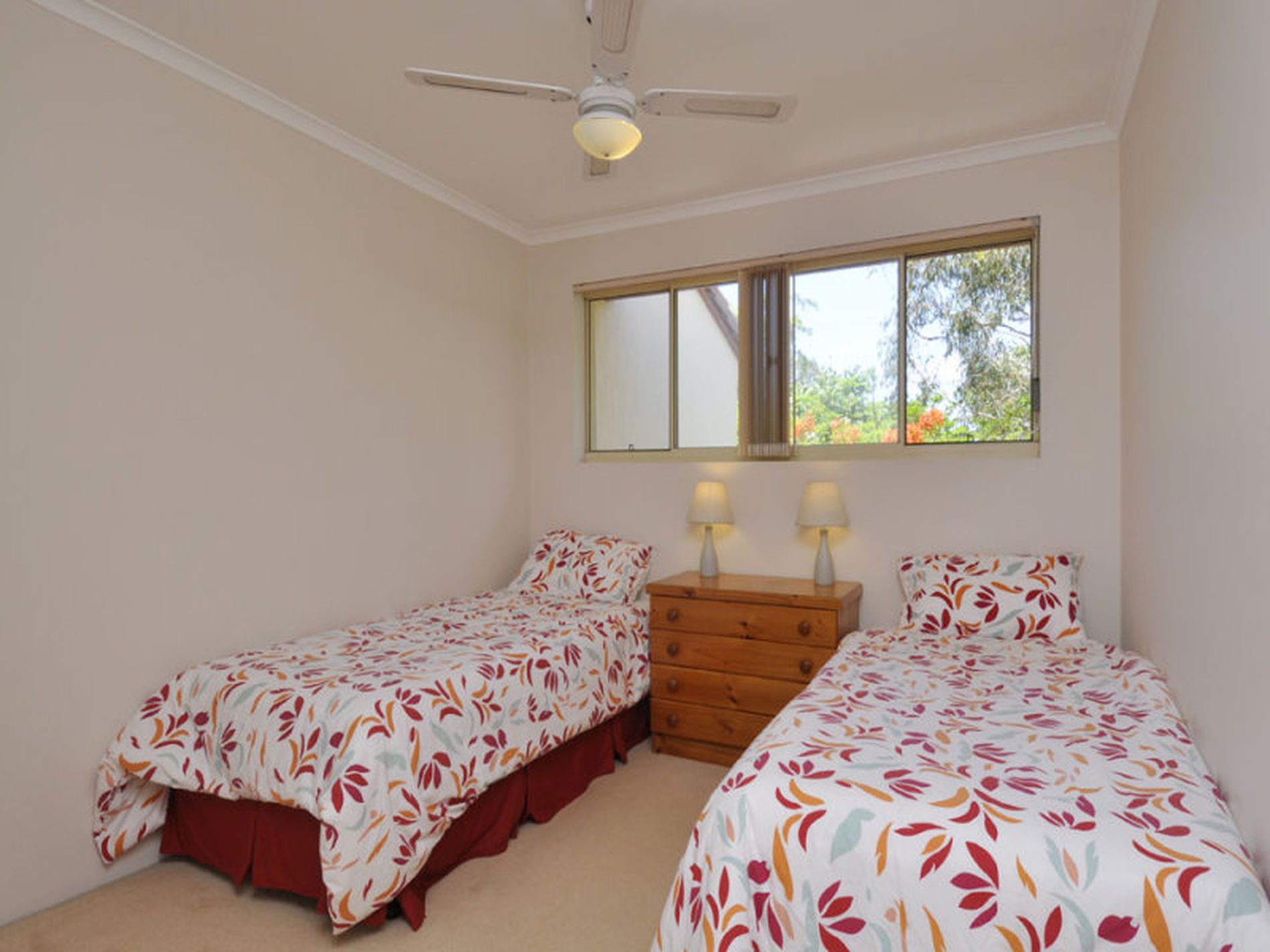 TWO LARGE BEDROOMS BOTH WITH BUILT IN WARDROBES AND CEILING FANS. MAIN BEDROOM WITH ENSUITE. FULLY FURNISHED, SEPARATE TOILET, SPACIOUS SECOND BATHROOM / LAUNDRY.
