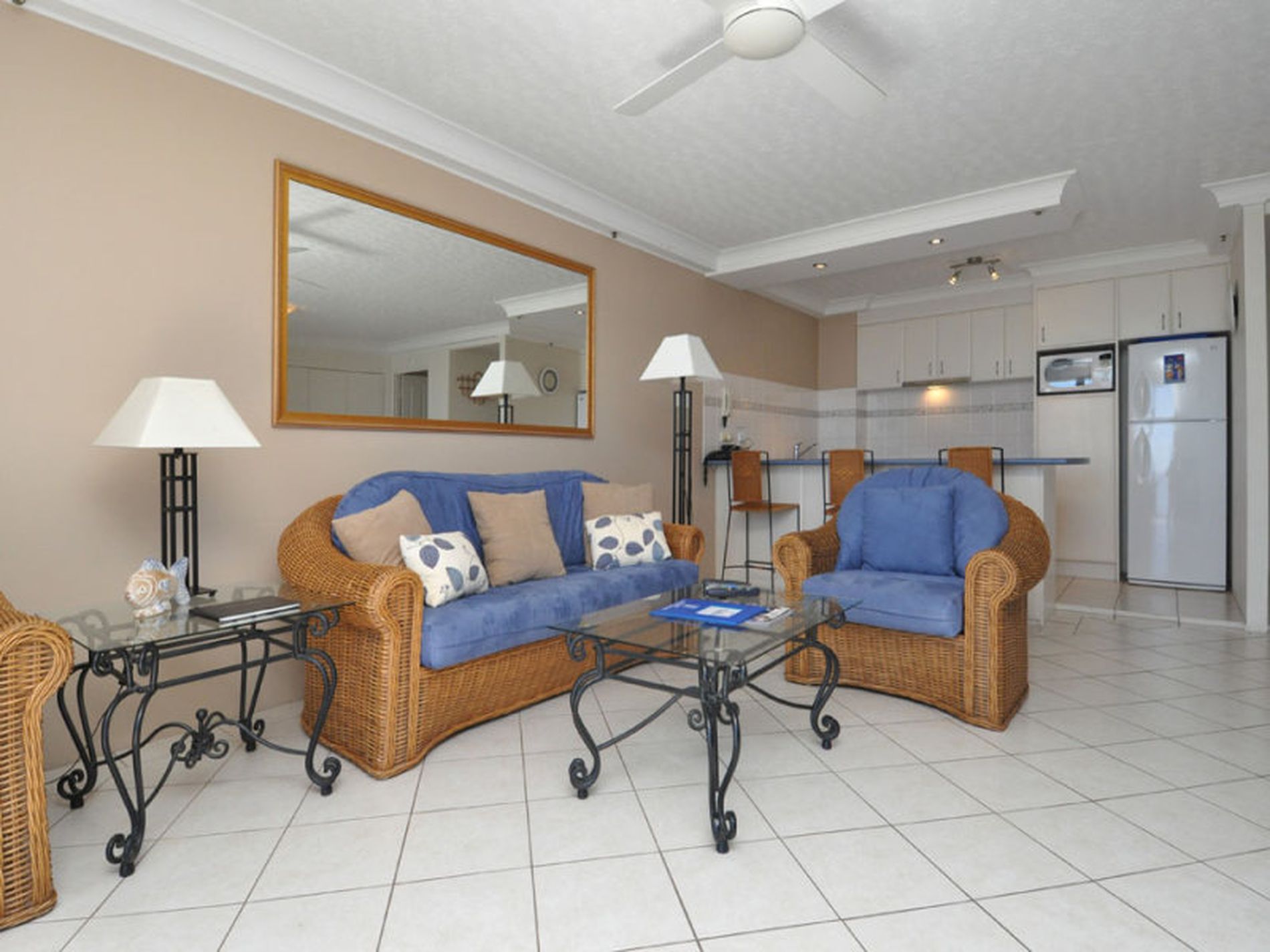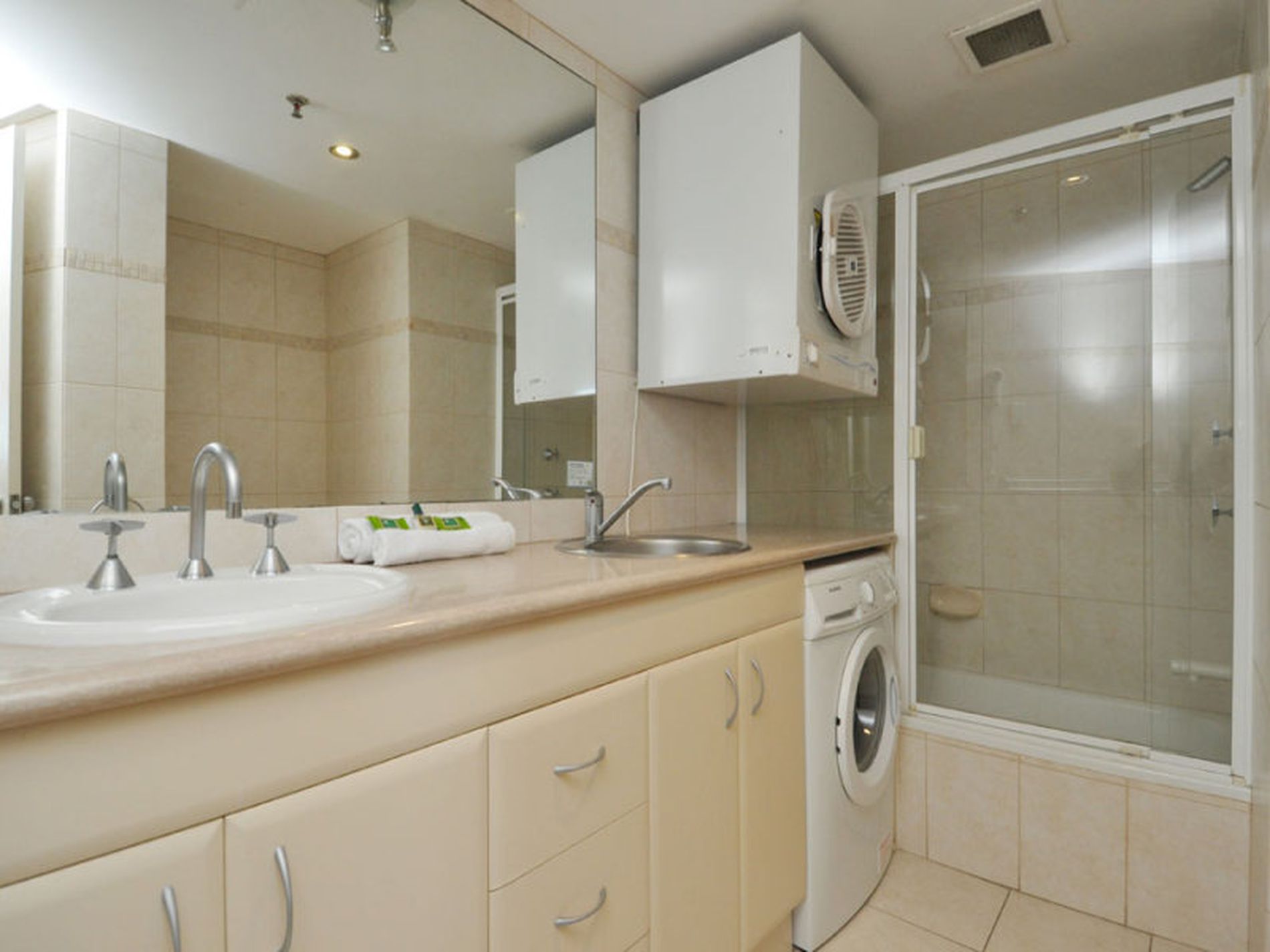 Two bedrooms, two bathrooms, (ensuite to master and LARGE second bathroom), generous open plan living areas, kitchen overlooking ocean vista. Fully furnished, high floor apartments of this calibre are rarely available.