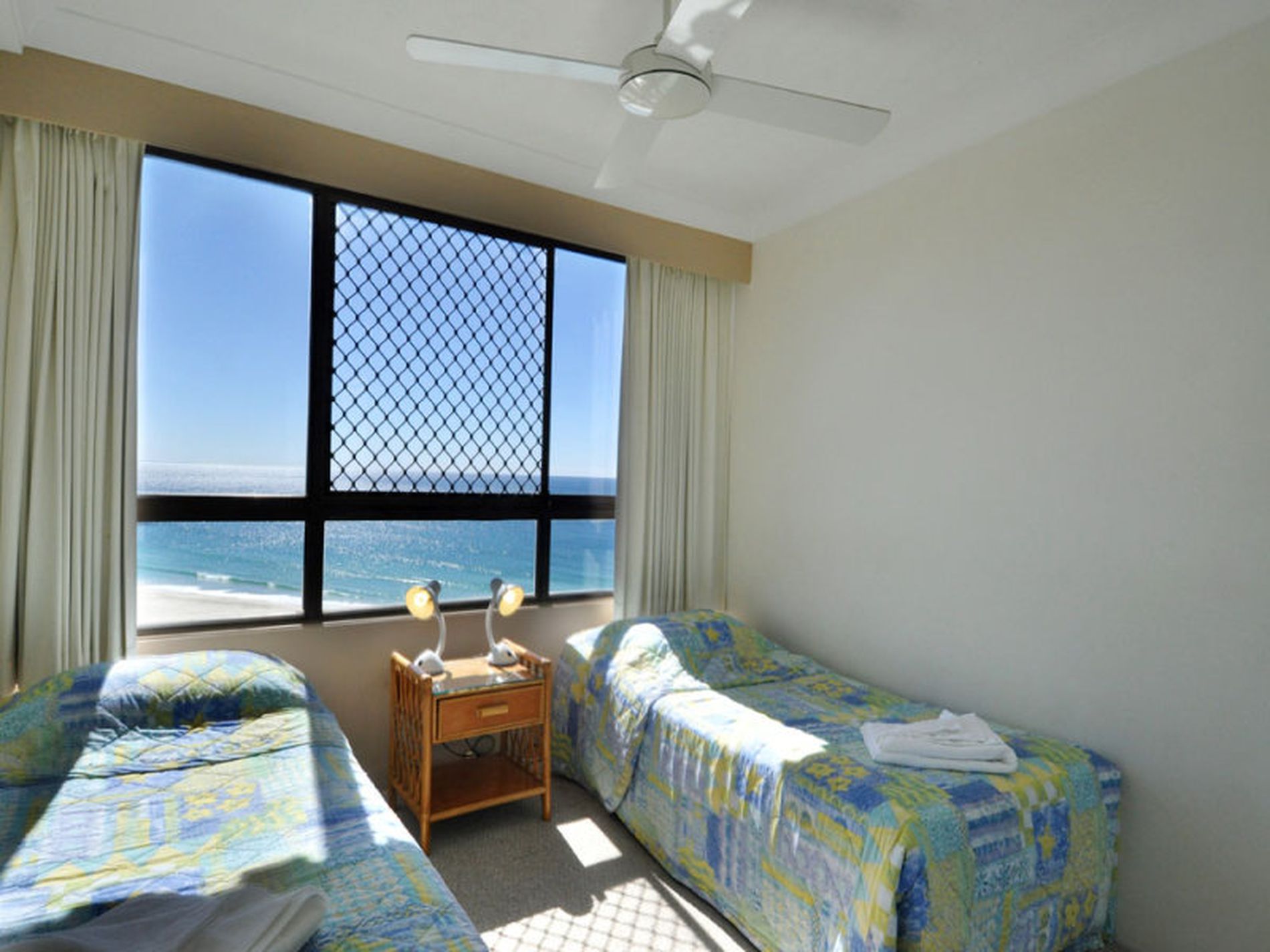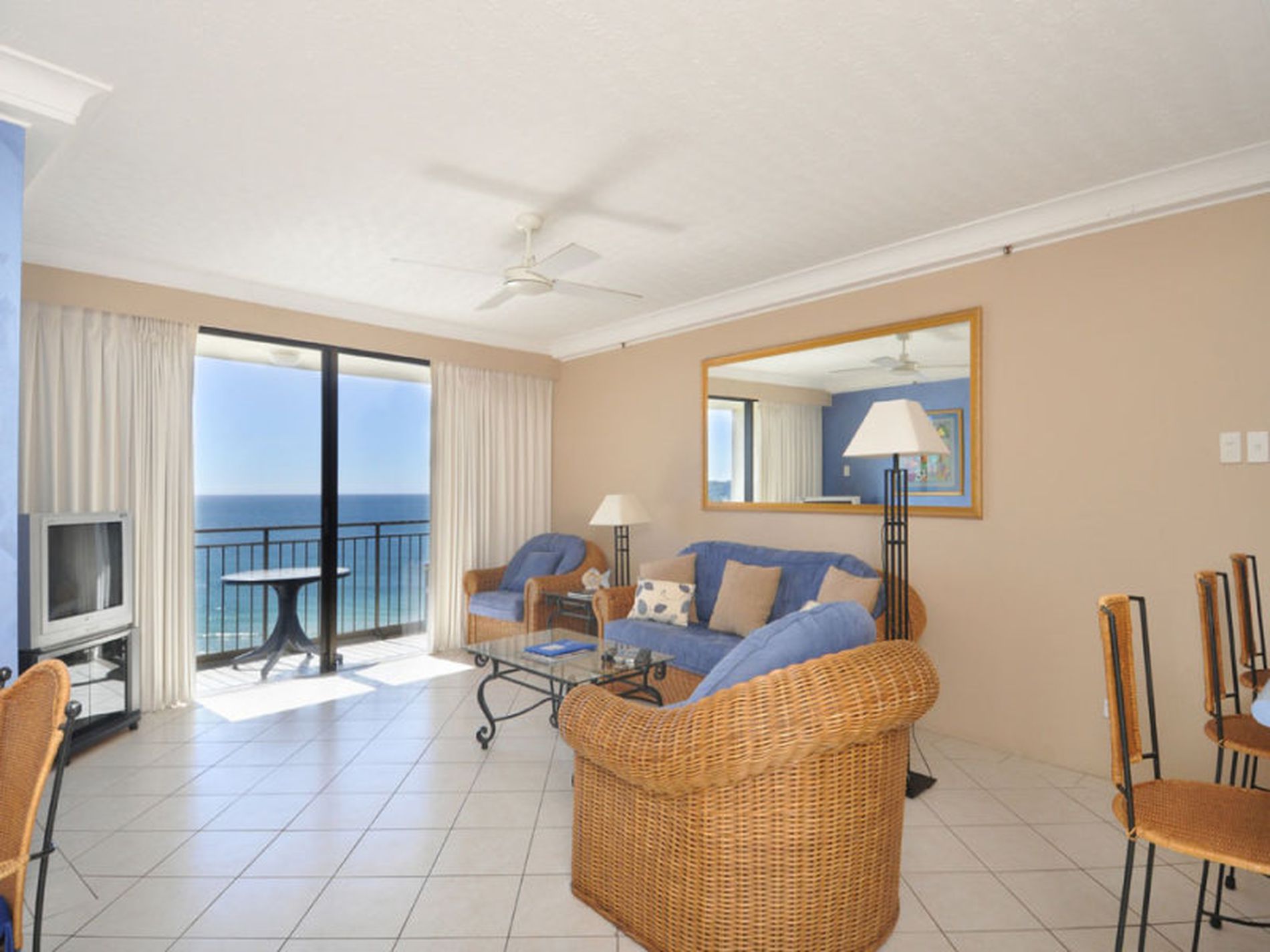 Absolute beachfront apartment with stunning panoramic ocean views to the north to the east and capturing the full sweep of the beach to Burleigh Headland.