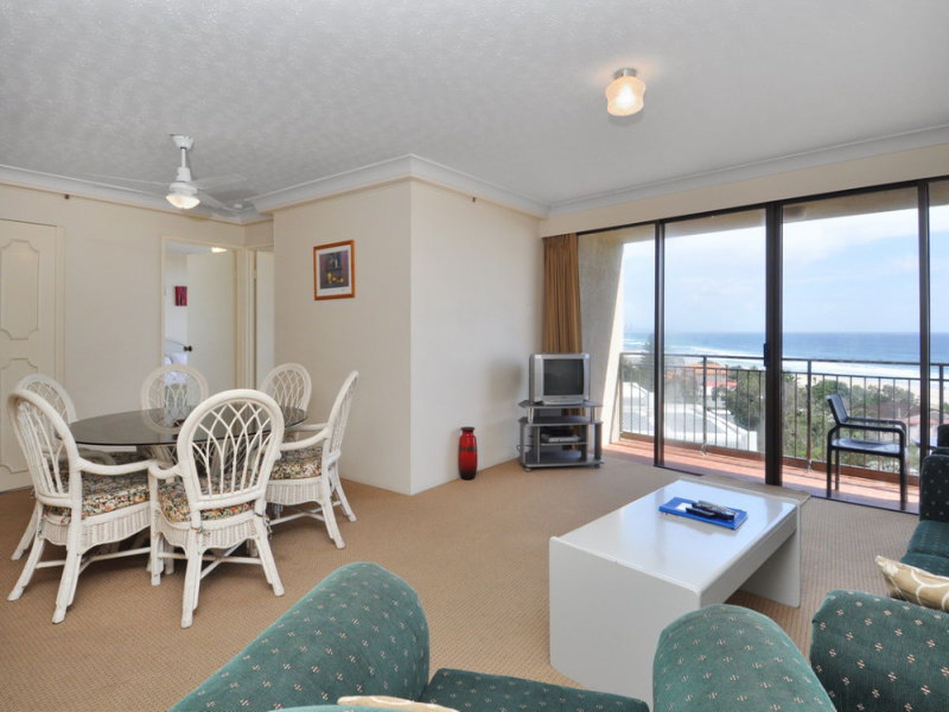 BEACHFRONT APARTMENT WITH STUNNING VIEWS NORTH TO BURLEIGH HEADLAND AND BEYOND TO SURFERS PARADISE.